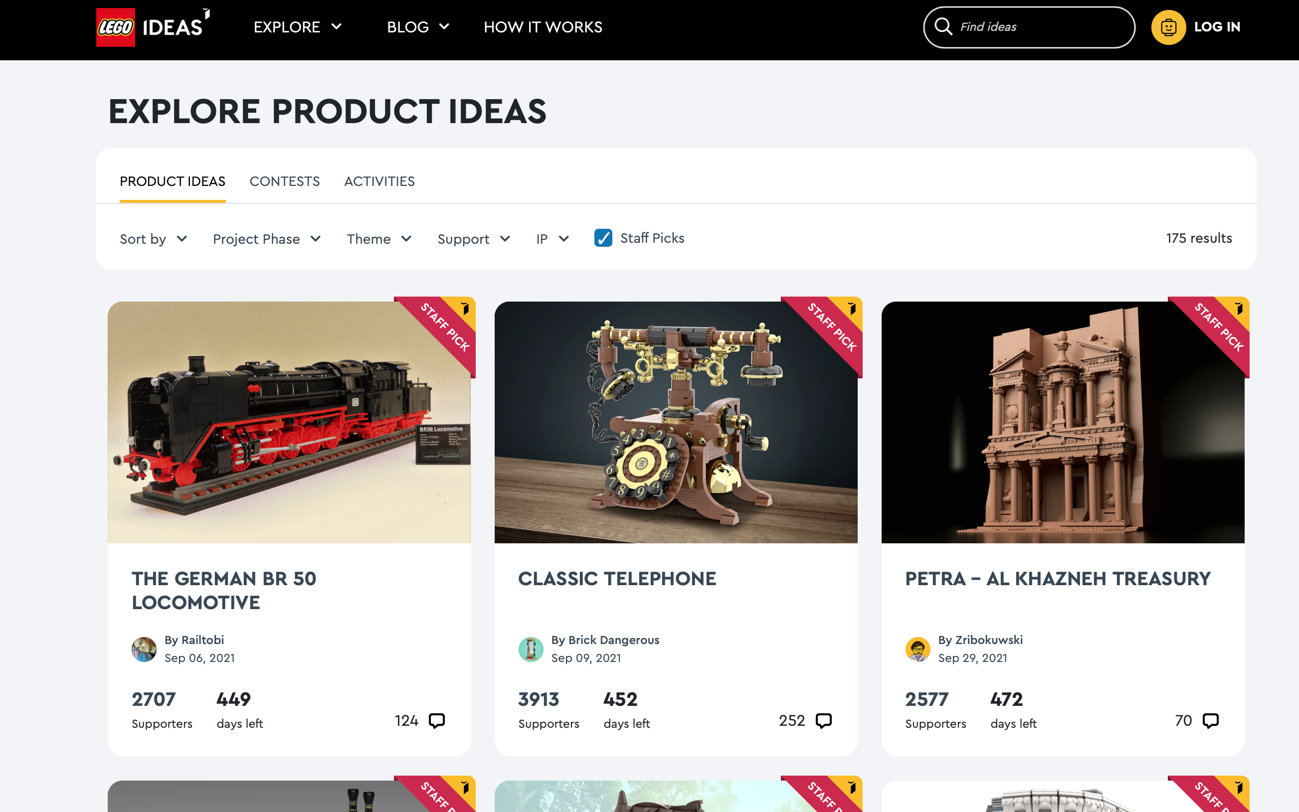 Und auch die Markteinführung eines neuen Sets wird gleich von den Käufen der Community befeuert, die bereits auf der Ideas-Plattform mit dem Produkt „beworben“ wurden.